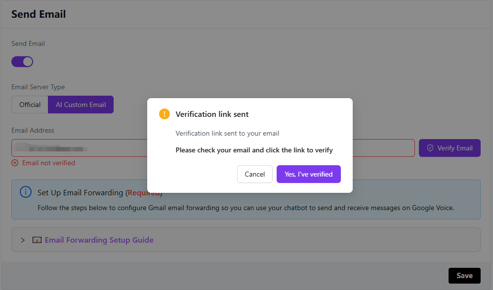 Enter the recipient email address in the pop-up dialog, click the Send Test Email button, then check the target email inbox. Note: The recipient email cannot be the same as the sender email.